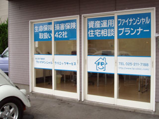 ファイナンシャルクリニックサービスさんが事務所移転ということで、今日は午前中に新しい事務所の窓サインの施工に行ってきました。