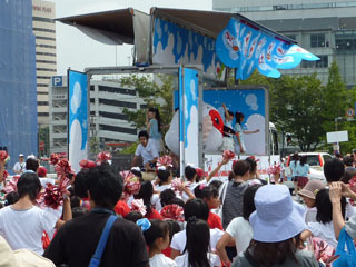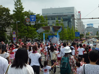 トッキッキの乗ったトラックを先頭に、古町から万代橋まで「ガムシャラな風になれ」を踊りながら行進です。